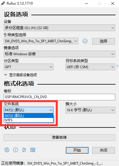 4.选择文件系统(如果制作win10启动盘,无法选择FAT32)