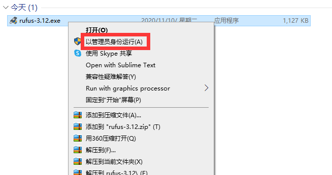 1.下载rufus工具,以管理员身份运行(点击下载Rufus)